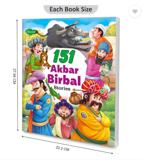 The 151 Akbar Birbal Stories book is a remarkable compilation that transports readers to the vibrant world of Mughal India. Measuring 11x8.5 inches, this book is visually stunning, with attractive illustrations that breathe life into each story. The choice of best quality art paper with a weight of 150 gsm ensures a luxurious reading experience, as readers can feel the smoothness and durability of each page. What sets this book apart is its easy language, making it accessible to readers of all ages. The stories are crafted in a way that captivates young minds and engages adult readers, providing an enriching experience for the entire family. Each tale is carefully selected to showcase the wisdom, wit, and camaraderie between Emperor Akbar and his beloved advisor Birbal. The glossy cover finish adds a touch of sophistication, making the book an ideal gift for special occasions. With its collection of multiple stories, readers will find themselves immersed in the fascinating world of Akbar Birbal. From clever riddles to moral dilemmas, each tale presents an opportunity for readers to exercise their minds and discover important life lessons. With 500 pages of storytelling brilliance, this book offers hours of entertainment and enlightenment. The tales of Akbar Birbal depict the timeless struggle between power and intellect, where intelligence triumphs over brute force. Through their witty exchanges and problem-solving abilities, Akbar and Birbal navigate intricate situations, showcasing the power of wisdom, cunning, and the ability to think outside the box. The 151 Akbar Birbal Stories book is not just a source of amusement but also a treasure trove of cultural heritage and moral values. As readers embark on this literary journey, they will encounter themes of honesty, justice, loyalty, and the significance of wit in everyday life. The stories inspire readers to develop critical thinking skills, moral reasoning, and empathy. This book transcends its role as mere entertainment, serving as an educational tool as well. It stimulates reading habits, promotes language development, and encourages discussions on ethics and decision-making. Teachers can incorporate these stories into their classrooms, fostering imagination, cultural understanding, and moral growth among students. In conclusion, the 151 Akbar Birbal Stories book is an enchanting literary masterpiece that combines attractive illustrations, easy language, and a collection of captivating tales. Its larger size, best quality art paper, and glossy cover finished further elevate the reading experience. Whether enjoyed individually or shared as a family, this book promises endless hours of delight, enlightenment, and intellectual stimulation.