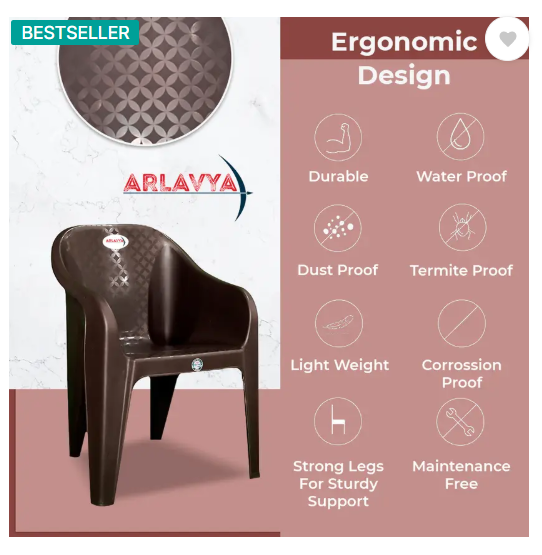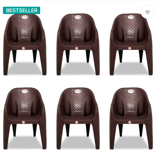 ARLAVYA Mario Model for Home, Garden, Office, Cafeteria Plastic Outdoor Chair (Brown, Set of 6, Pre-assembled)