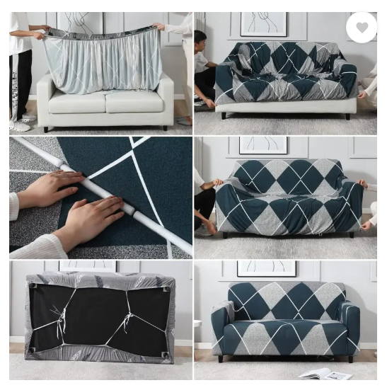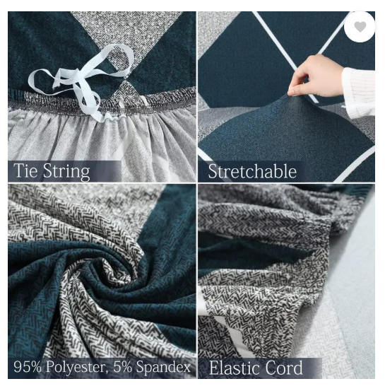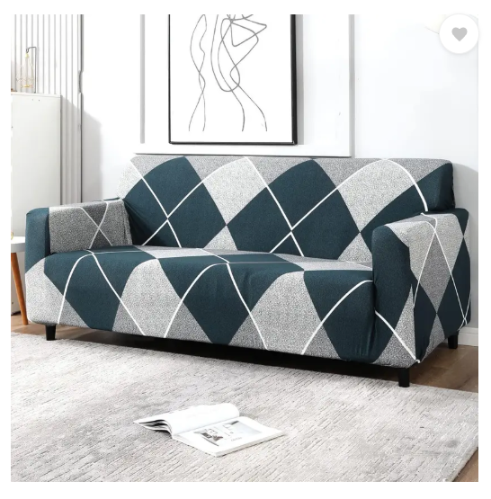 B BESTILO Polyester Checkered 4 Seater Sofa Cover (Blue Pack of 1)