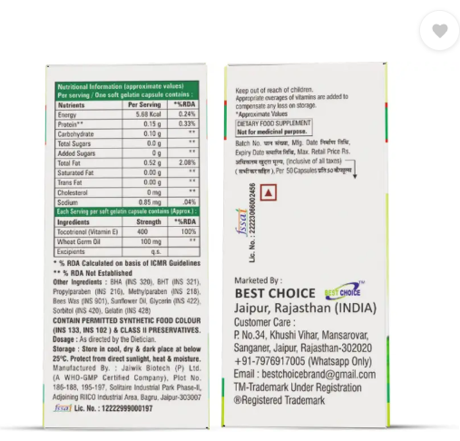 BEST CHOICE NUTRITION Vitamin E-400 Face Hair Pimple Glowing Skin & hair care (9 x 10 Capsules)