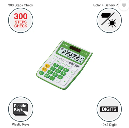 CASIO MJ-12VCB-GN Desktop Basic Calculator (12 Digit)
