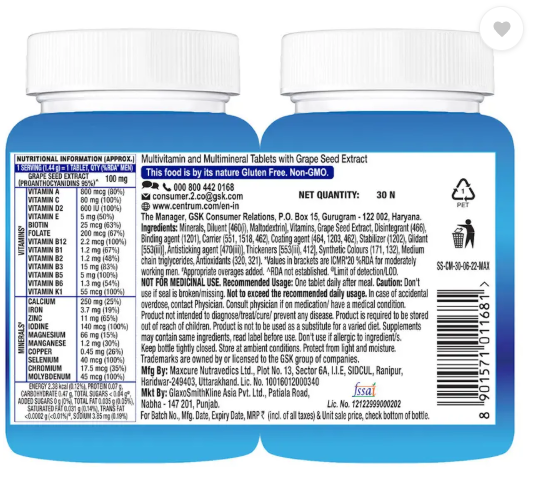 Centrum Men|Supports Overall Health (Veg) | World's No.1 Multivitamin (30 Tablets)