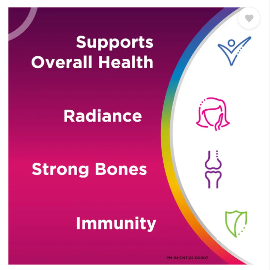 Centrum is World's no. 1 Multivitamin and is now in India. Centrum Women is a daily nutritional supplement, to meet your modern-day nutrition needs so you can feel confident that your body can keep up with your demanding Multi-life. Your daily supplement is formulated with 23 essential Vitamins and Minerals. Centrum formulations have been tailormade for Indian diets & body needs. Its ingredients support overall health. The Immune support nutrients such as Vitamin C and Zinc support Immunity and helps in fighting off infections. The formulation contains Calcium & Vitamin D that supports that your body gets optimum support for maintaining strong bones. Centrum Women is formulated with plant based Botanical (Sodium Hylauronate) that supports healthy supple skin and radiance from within. It contains Vitamin A for eye health & Biotin to support healthy hair. Centrum Tablets are 100% vegetarian & non habit forming. These are by nature gluten free tablets amd are Non GMO. Centrum Multivitamin supplements are manufactured in a FSSAI certified facility that is GMP certified. You can refer pack for usage and administration instructions, or can consult your health care practioner. For storage condition please refer the pack. For references, please refer to Centrum India’s website.