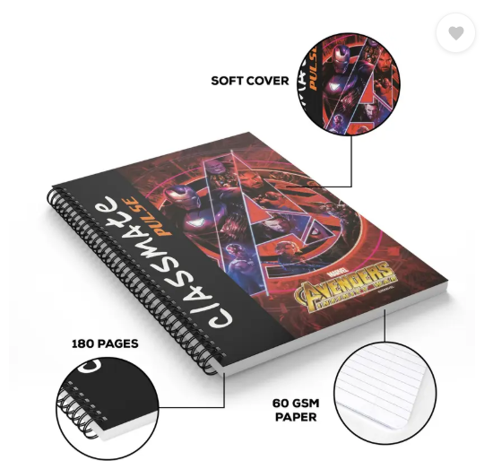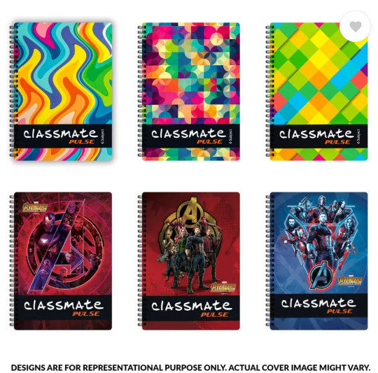 Classmate Notebooks are made to the highest quality standards. Made from superior quality paper and pulp, the pages are whiter, brighter and smoother. The superior cut and excellent finish ensure the pages are in perfect alignment without any folded corners. The superior binding strength and wrapper lamination make them as durable as ever. These notebooks come with a wide variety of covers with activities and trivias to make every classmate notebook unique in its own way.