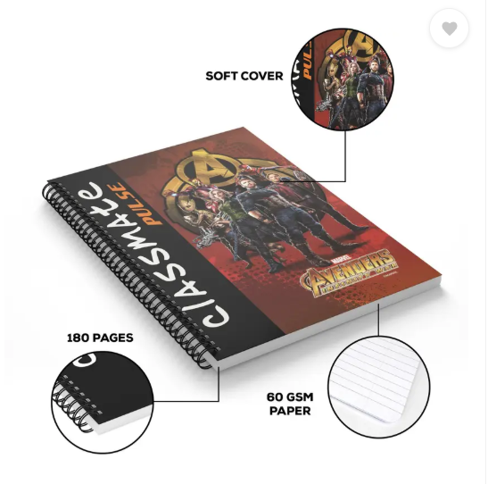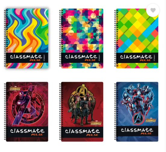 Classmate Pulse 1 Subject (297 X 210 mm) Spiral A4 Notebook Single Line 180 Pages (Multicolor, Pack of 3)