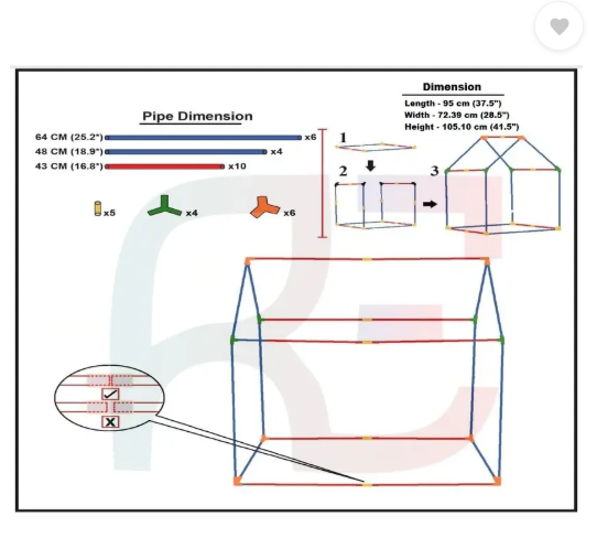 The play tent house's simple assembly design makes it an easy setup option for parents. With just a few parts and straightforward assembly process, the tent is simple to put together. It doesn't take long or complex procedures to quickly set up a safe play space for your kids. All it takes is a few easy steps to transport your children to a magical world.