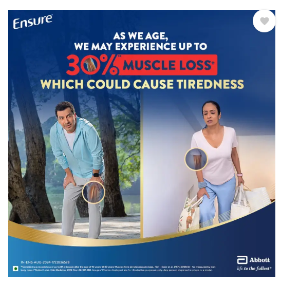 Complete Balanced Nutrition For Adults: As you age, you may frequently feel weak & tired due to loss of muscle mass. Ensure Complete, balanced nutrition can help support bone & muscle strength to help you stay strong & active. NOW WITH HMB: New Ensure is the only adult nutrition supplement that has HMB which helps build and protect muscles. Ensure also helps to improve muscle strength in 8 weeks. MUSCLE STRENGTH: Ensure helps you revive muscle strength as you age as it is a source of protein and other 32 nutrients including HMB to help build muscle and strength. IMMUNITY: Ensure helps build immunity as it contains 11 immunity nutrients which are Vitamin A, Vitamin C, Vitamin E, Selenium, Vitamin B6, Iron, Vitamin D, Folate, Zinc & Copper ESSENTIAL NUTRIENTS: A nutrition supplement product scientifically formulated to provide 100% RDA of Vitamin A, E, C, B2, B12, Biotin, and folate to support nourishment. VARIANTS: This specialized nutritional drink is available in chocolate and vanilla flavor and comes in 200gm, 400gm 1kg, and 2kg sizes. Ensure is the #1 Nutritional Supplement drink in the world.