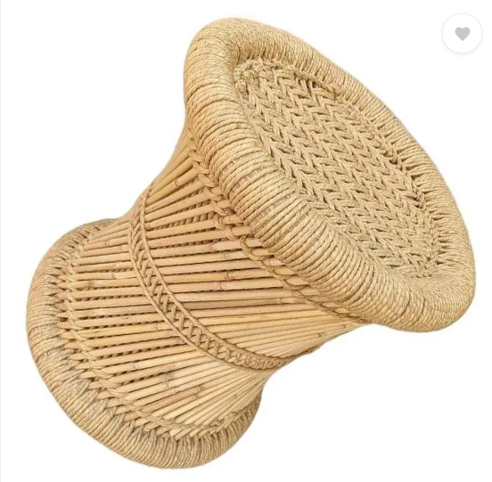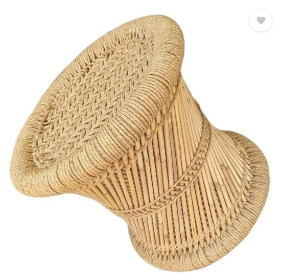 Extend creation Handmade and Natural Bamboo Mudda Stool With Beige - 12 X 12 Inch Outdoor & Cafeteria Stool (Beige, Pre-assembled)