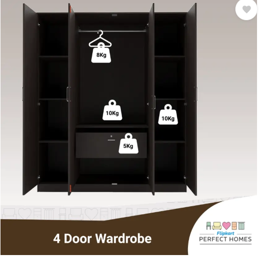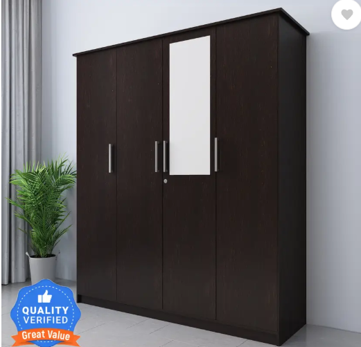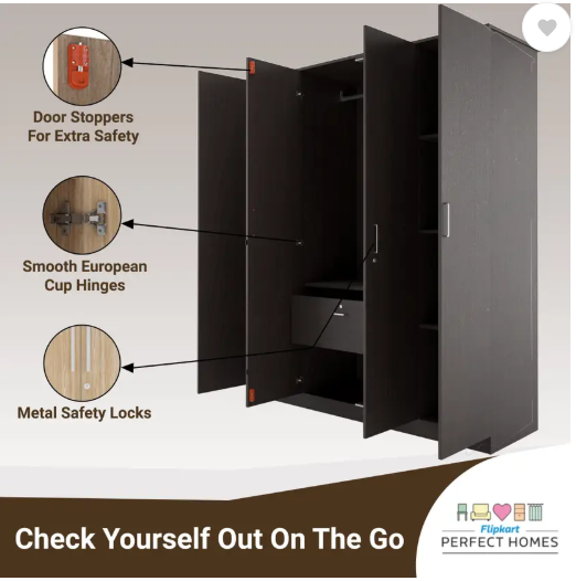 Flipkart Perfect Homes Julian Engineered Wood 4 Door Wardrobe (Finish Color - Wenge, Mirror Included, Knock Down)
