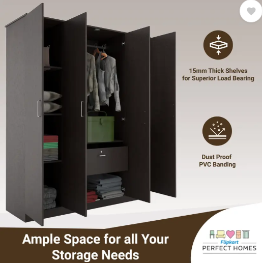 This wardrobe comes with 15 mm thick shelves which are designed to withstand heavy load and remain strong and sturdy.