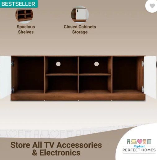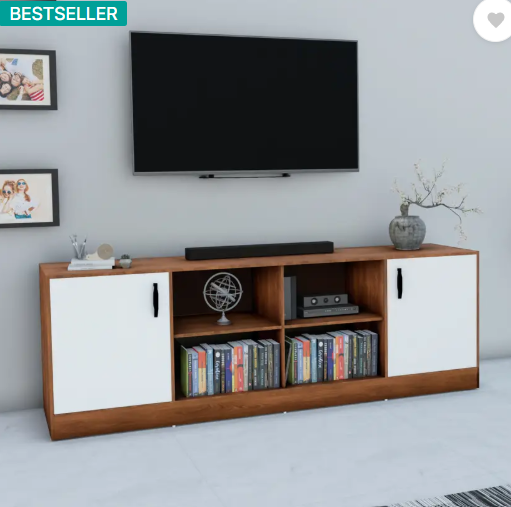 Flipkart Perfect Homes Kamet Engineered Wood TV Entertainment Unit (Finish Color - Walnut & White, Knock Down)