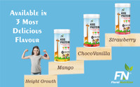 This protein powder includes the goodness of nature with its herbal extracts. It includes carum roxburghianum, oregano extract, vitis vinifera, ginger, tinospora cordifolia and glycyrrhiza glabra. All of these ingredients work on harmony to provide your child an enhanced overall well-being.