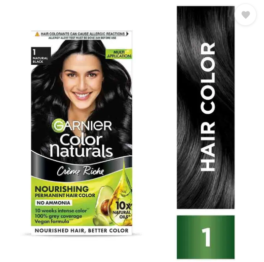 GARNIER Color Naturals Creme Hair Colour |Long-lasting color & Shine , Shade 1, Natural Black