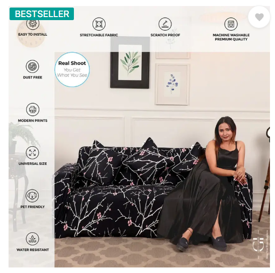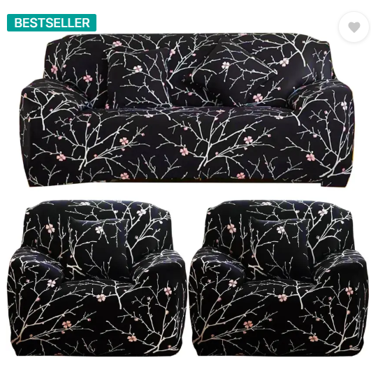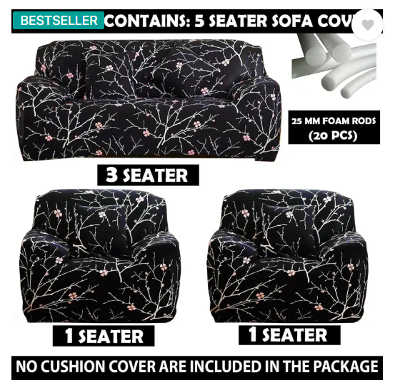 Gifts Island Polyester Floral 3+1+1 Seater Sofa Cover (Black Stem Pack of 3)