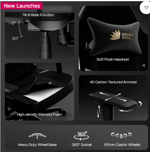GREEN SOUL Monster Ult. (S) Multi-Functional Ergonomic Chair|Gaming & WFH|Supreme Comfort Gaming Chair (Black)
