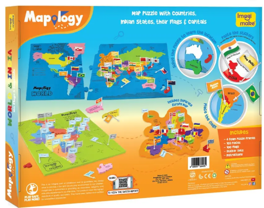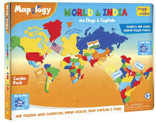 Imagimake Mapology India & World with Capitals-Educational Toy for Kids Above 5 Years (106 Pieces)