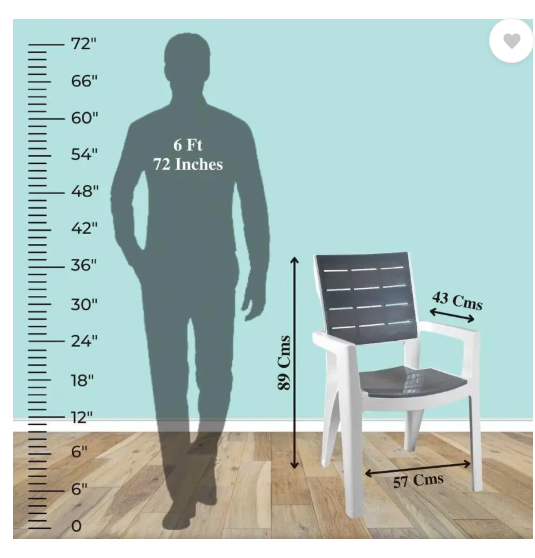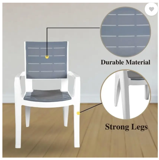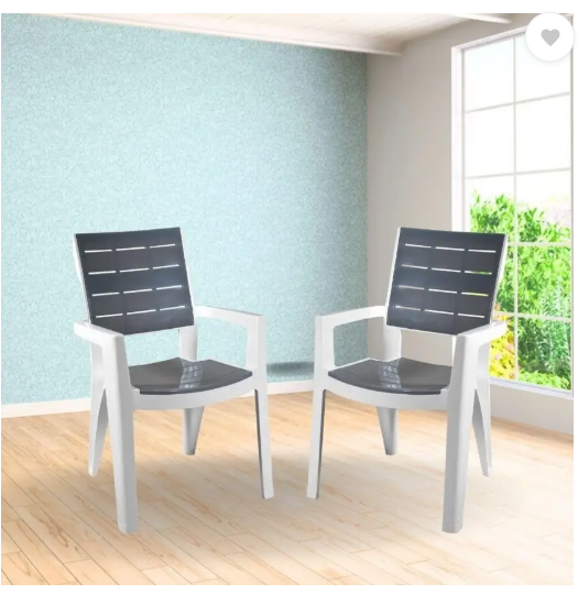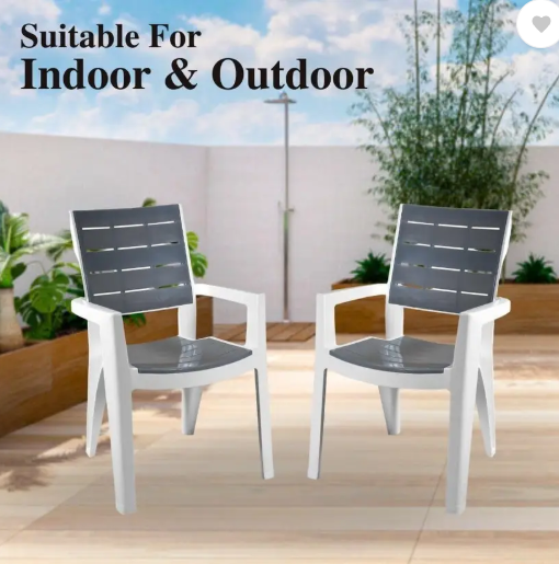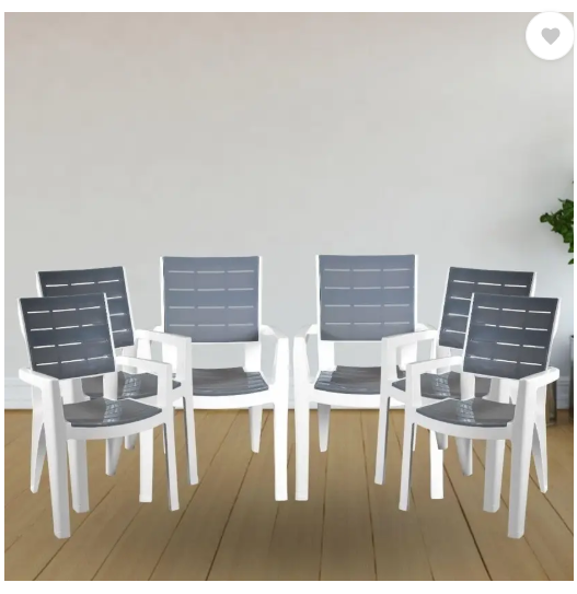 ITALICA Designer Series Comfortable Plastic Arm Chair/Double Insert Stackable Chair/ Plastic Outdoor Chair (White & Grey, Set of 6, Pre-assembled)
