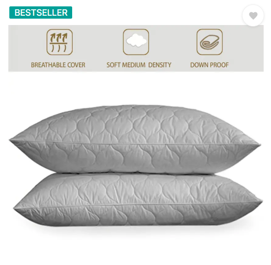 LA VERNE QUILTED Microfibre Solid Sleeping Pillow Pack of 2 (Grey)