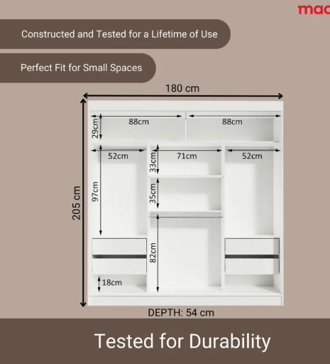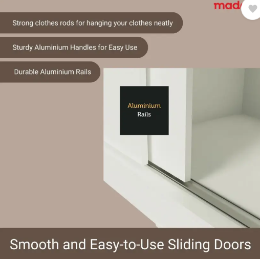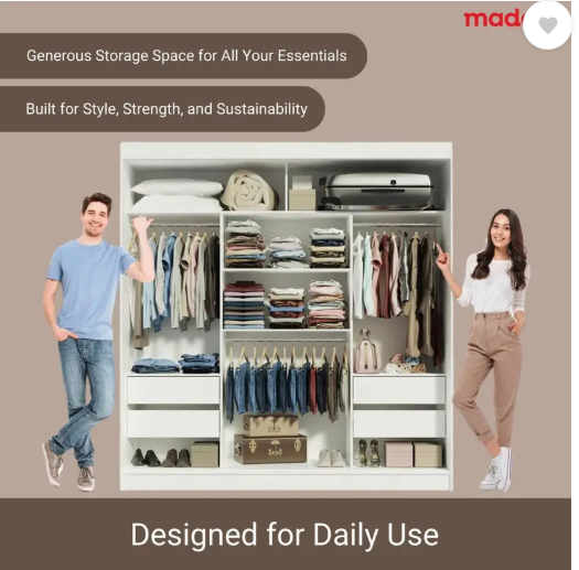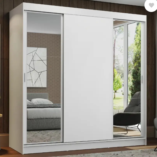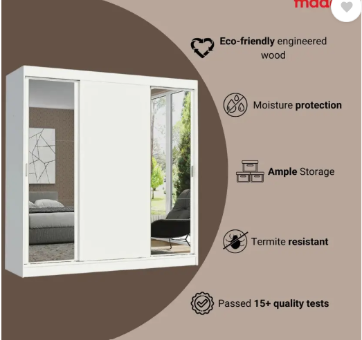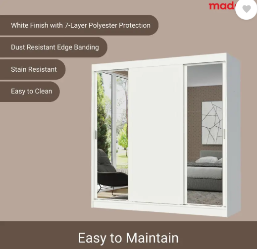Madesa Reno Couple Wardrobe Engineered Wood 3 Door Wardrobe (Finish Color - White, Mirror Included, Knock Down)