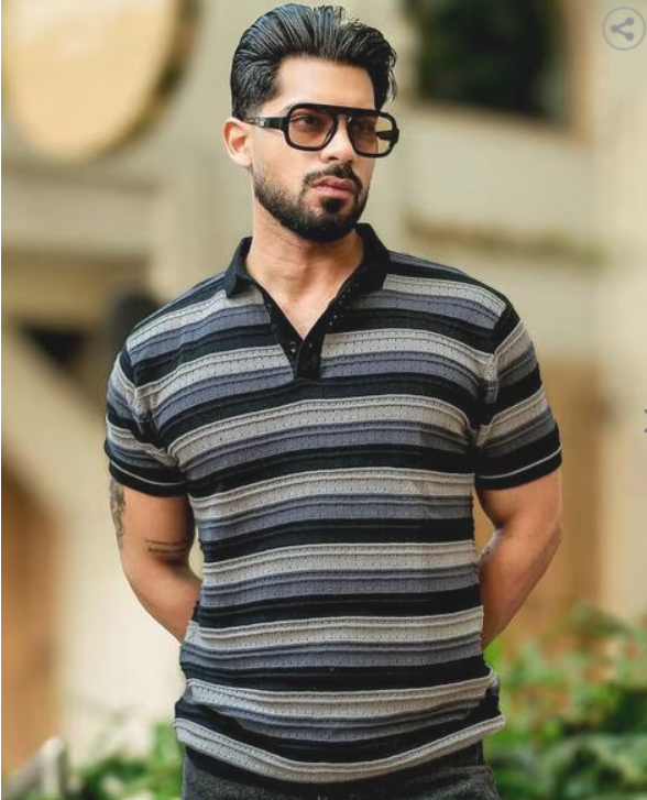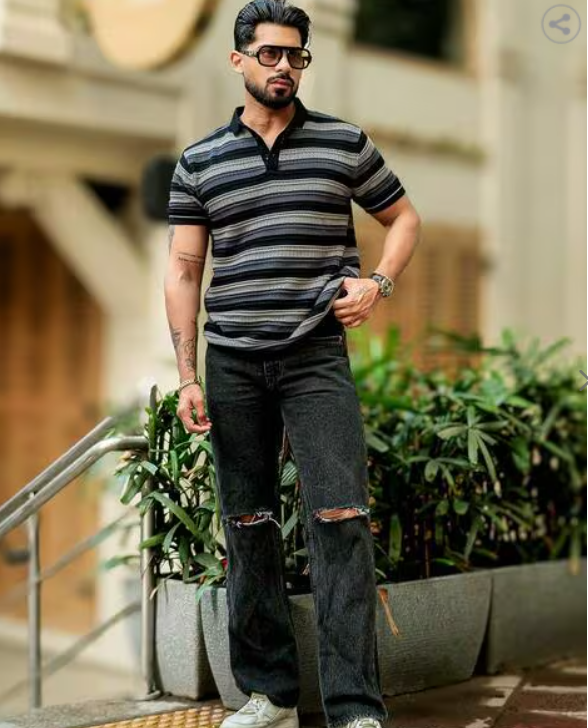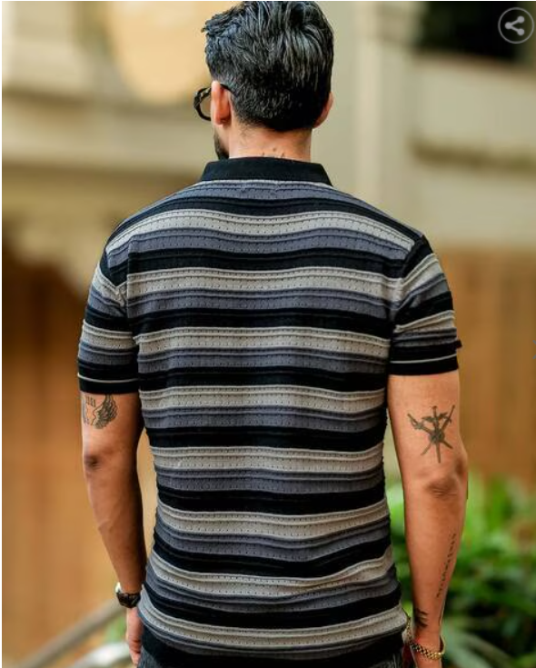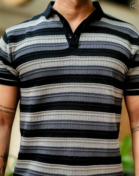 MANIAC Men Stripes Slim Fit Polo T-shirt