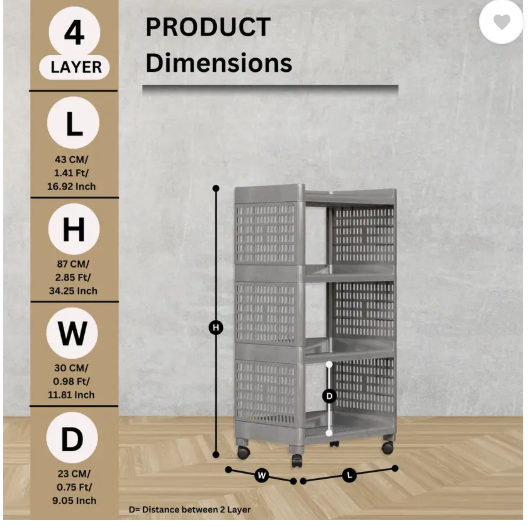 Marmik 4 Layer Multipurpose Storage Rolling Cart with Wheels For Office, Home, Plastic Kitchen Trolley (DIY(Do-It-Yourself))