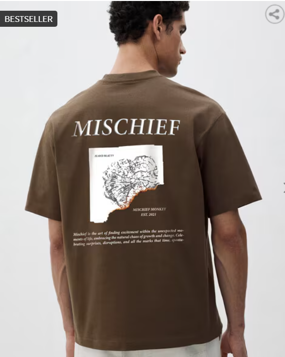 MISCHIEF MONKEY Men Oversized Fit Crew-Neck T-Shirt