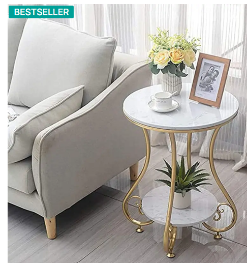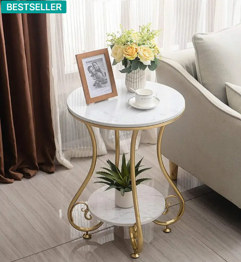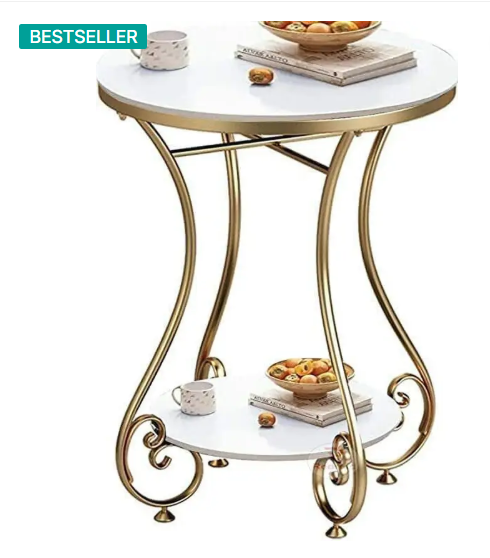 MODERN CRAFTHOUSE Modern Double Top Round Coffee Table | Side Table | Centertable | Beside Table Metal Bedside Table (Finish Color - Golden & White, Pre-assembled)