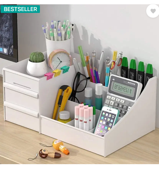 Mungat 7 Compartments Plastic Countertop Storage for Dressing Table & Stationery items (White)