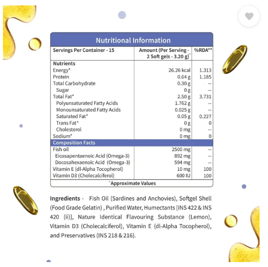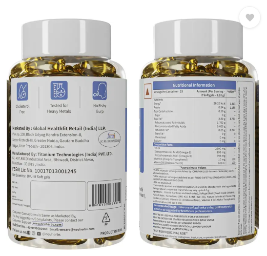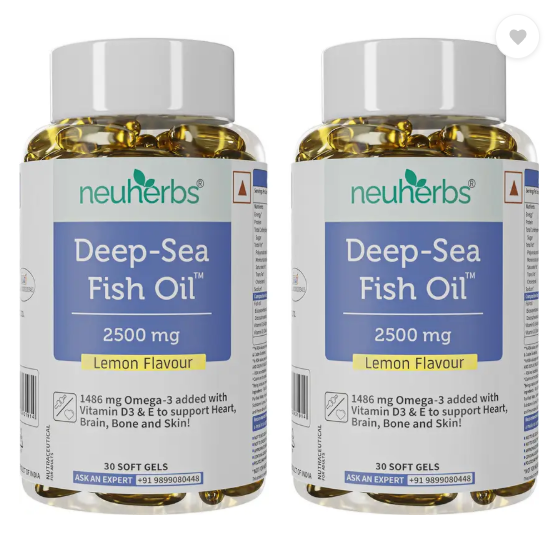 Neuherbs Deep Sea Fish Oil 2500 Mg(Omega 3 1486 mg; 892 mg EPA; and 594 mg DHA per serving) (2 x 30)