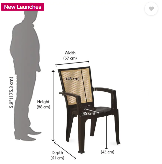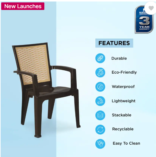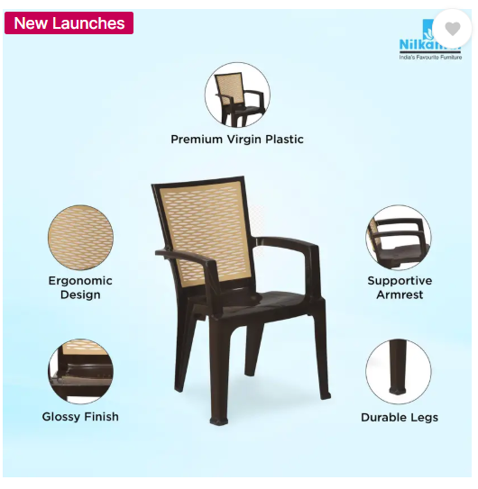 Nilkamal Mid Back Chair with Arm CHR2226 Home,Office, Garden,Restaurants,Indoor, Outdoor Plastic Cafeteria Chair (Brown, Set of 2, Pre-assembled)