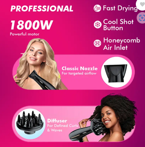 NOVA NHP 8213 Professional Hair Dryer (1800 W, Black)