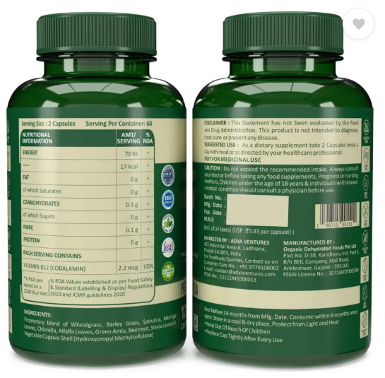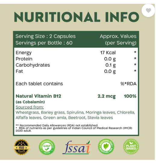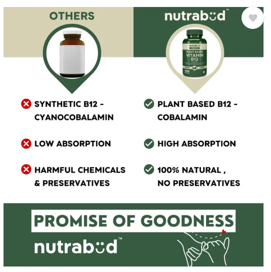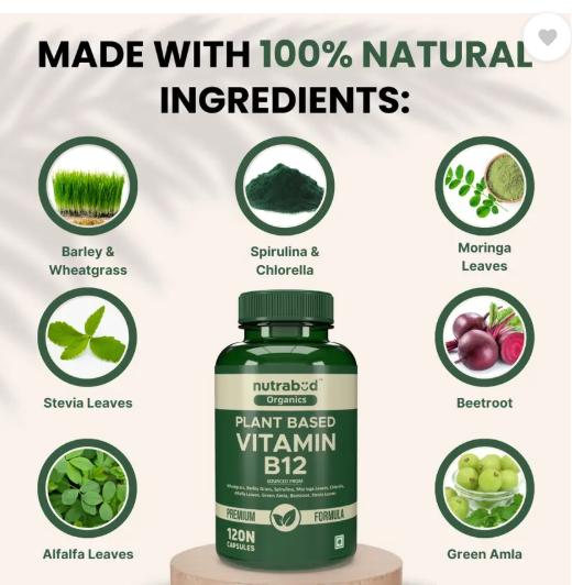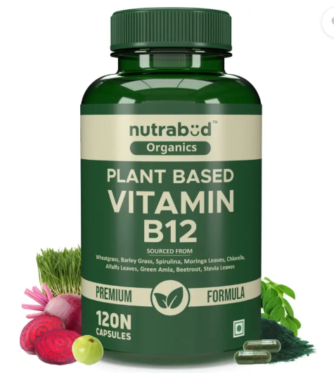 Nutrabud Organics Plant Based Vitamin B12 Supplement | Supports Nervous System (120 Capsules)