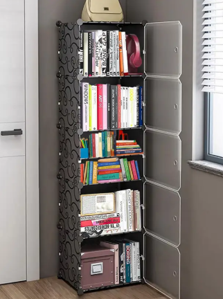 Ozoy Plastic Metal 5 Door 5 Shelf Books Storage Rack Organizer Metal Open Book Shelf (Finish Color - 5-Black, DIY(Do-It-Yourself))