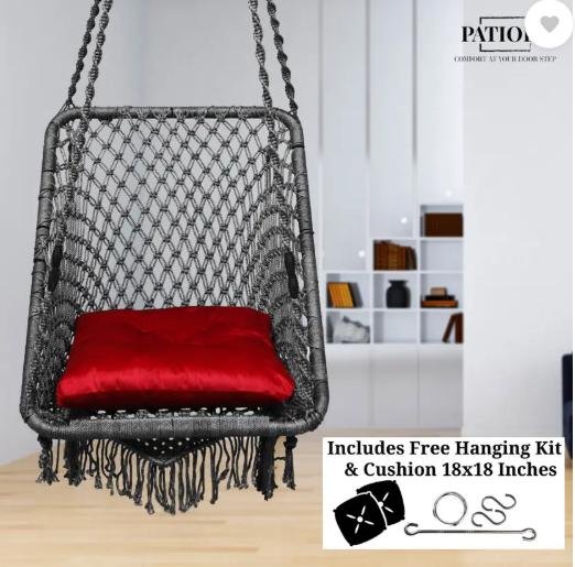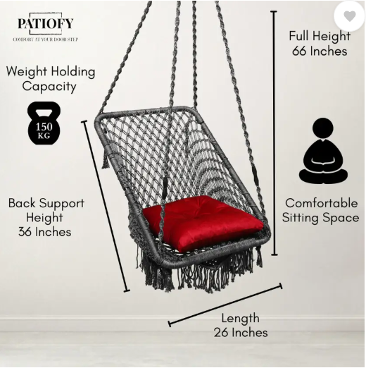 Patiofy Premium Rectangular Swing Chair for Adults & Kids, Swing for Adults Outdoor Polyester Hammock (Grey, DIY(Do-It-Yourself))