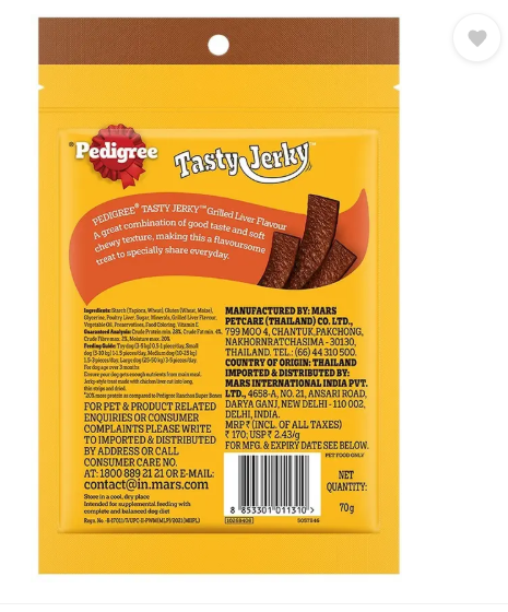 PEDIGREE Tasty Jerky Liver Dog Treat (70 g)