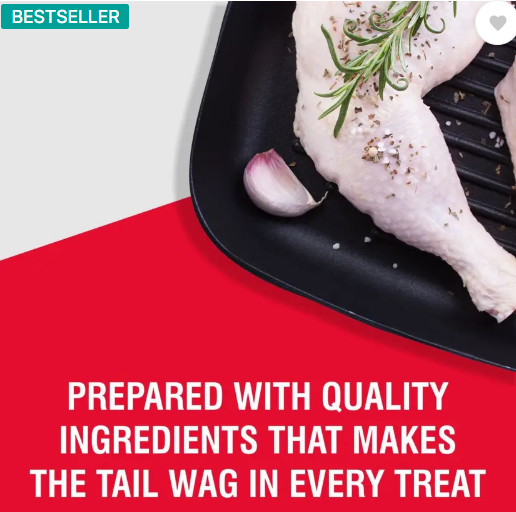 These treats are made with real chicken so that your canine friend enjoys chewing on them. Apart from essential vitamins and minerals, this packet of dog food is rich in Omega 3 and 6 fatty acids to ensure that your dog is healthy and his/her fur is lustrous.