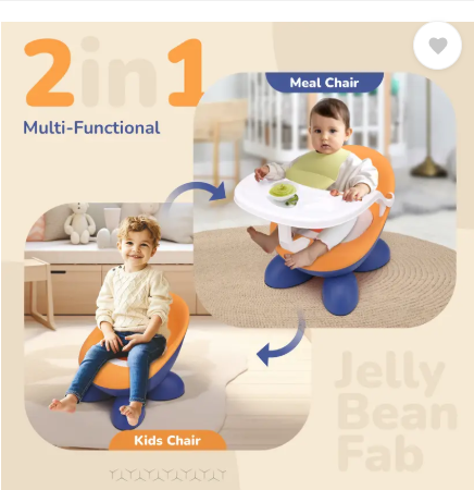 R for Rabbit Jelly Bean Fab 2 in 1 Baby Meal Chair, Kid Seating Chair Plastic Chair (Finish Color - Blue Orange, Pre-assembled)