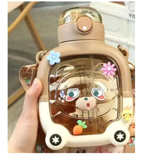RHINETOYS Cartoon-Printed Designer Teddy: Perfect 1L Anti-Leak Gift for Kids 1000 ml Water Bottle (Set of 1, Multicolor)