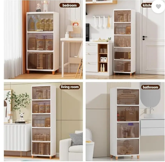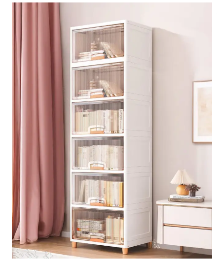 Sasimo 6-Door 6-Shelf Plastic foldable Cupboard PC Collapsible Wardrobe (Finish Color - 6-Crystal White, DIY(Do-It-Yourself))