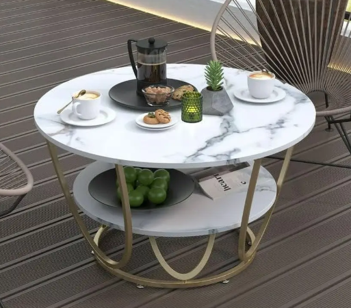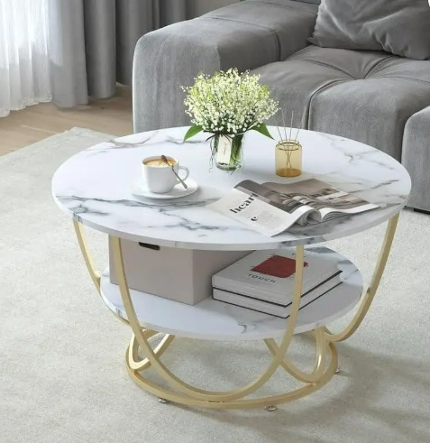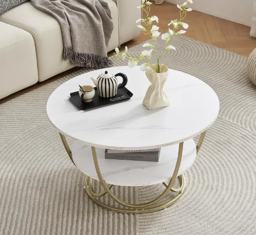 SS CRAFTMAKERS Right Choice Round Shape Coffee Table Engineered Wood Coffee Table (Finish Color - Golden, Pre-assembled)