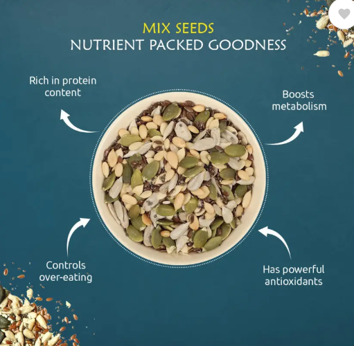 Thanks to their rich protein content, these mix seeds are a great addition to your diet. Packed with essential nutrients, they help boost metabolism, support weight management, and provide powerful antioxidants to help protect the body. These seeds contribute to maintaining energy levels throughout the day and are an excellent source of vitamins and minerals that support overall health.