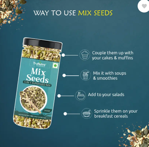 Offering high versatility, these mixed seeds can be added to a wide range of dishes. You can sprinkle them over your breakfast cereals or mix them into your salads for an added crunch. You can even blend them into your smoothies or stir them into soups. These seeds are also ideal for enhancing the texture and nutrition of baked goods, like cakes and muffins, offering endless possibilities for incorporating them into your meals.