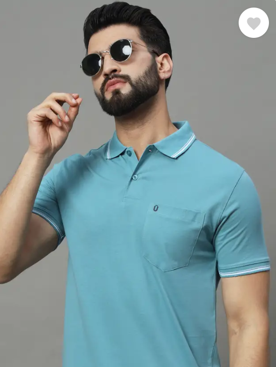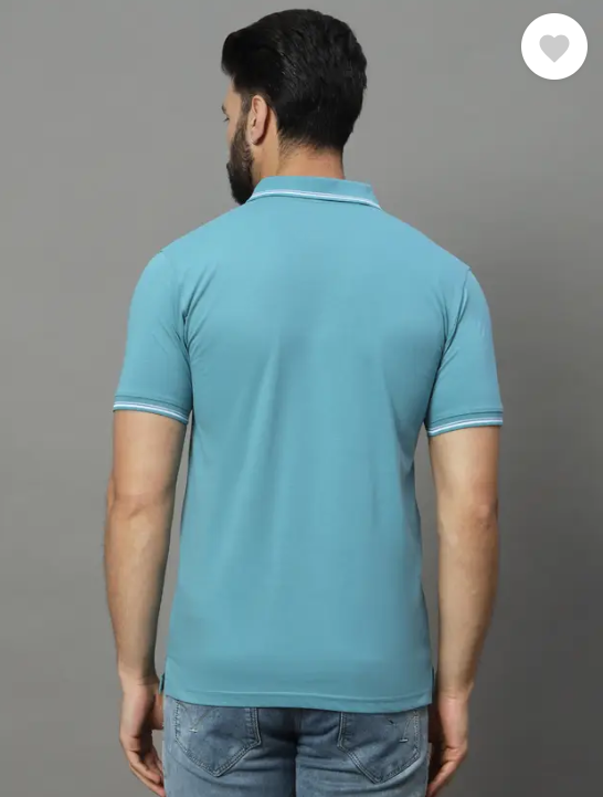 UNIBERRY | Men Solid Polo Neck Cotton Blend Blue T-Shirt