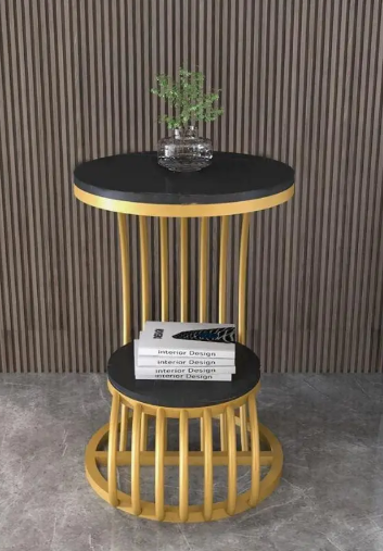 Unique Arts Shoppee Metallic Masterpieces: The Elegance of Metal Tables" End Table For Living Room Metal Side Table (Finish Color - Golden & Black, Pre-assembled)
