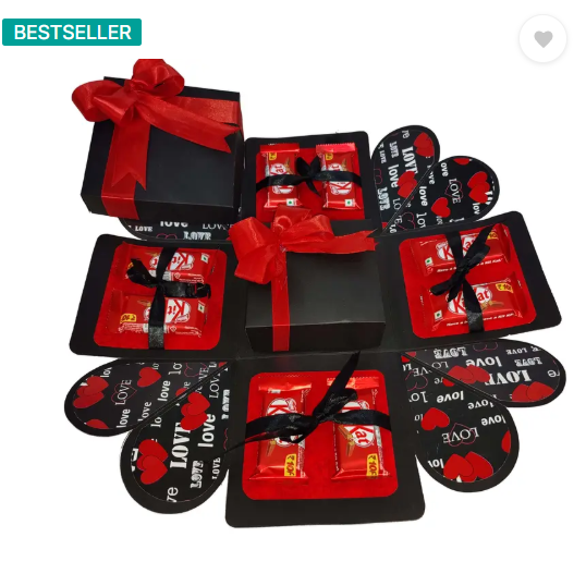 US IDEAL CRAFT Explosion Box, Birthday Gift (8 Kitkat Chocolate & Zigzag photo folder box) Paper Gift Box (Red, Black)